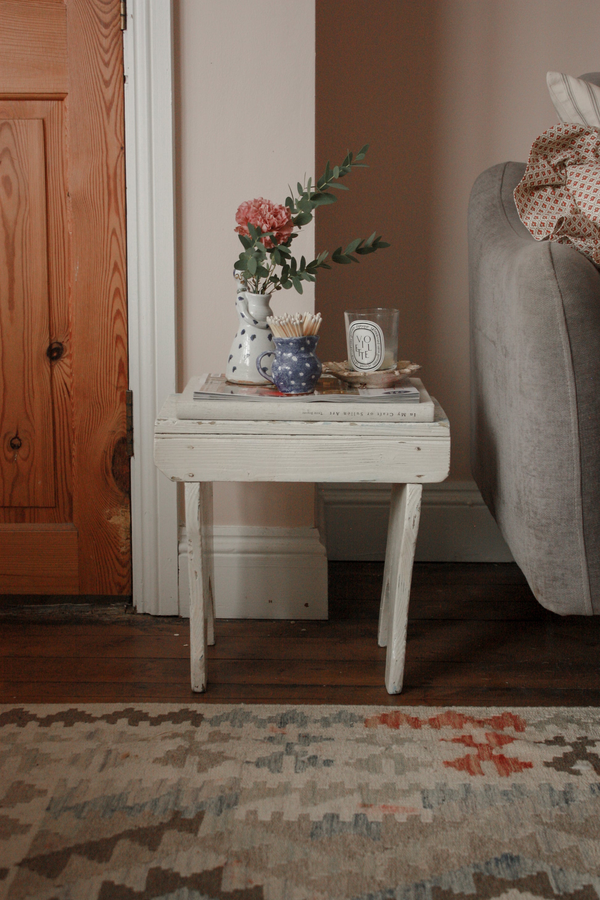 I love these stools as casual side tables beside the sofa for coffee, candles and a few choice blooms.