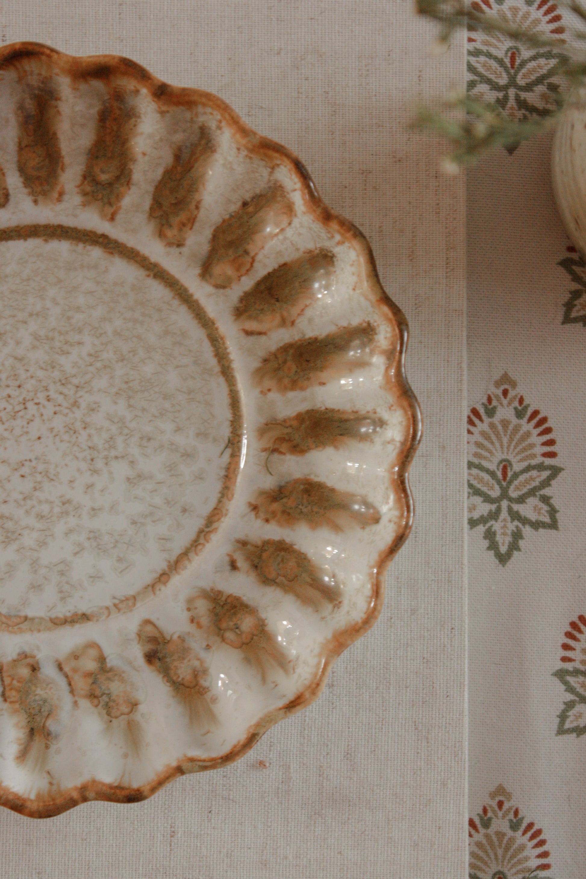 Rustic studio pottery scalloped dish